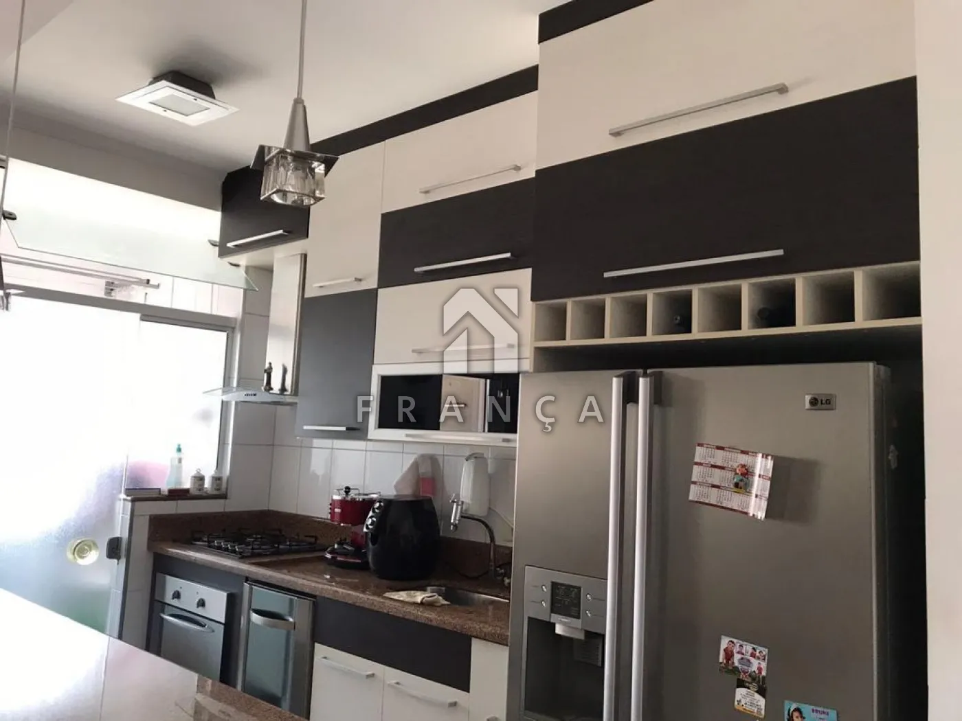 Cozinha planejada com fogão e geladeira