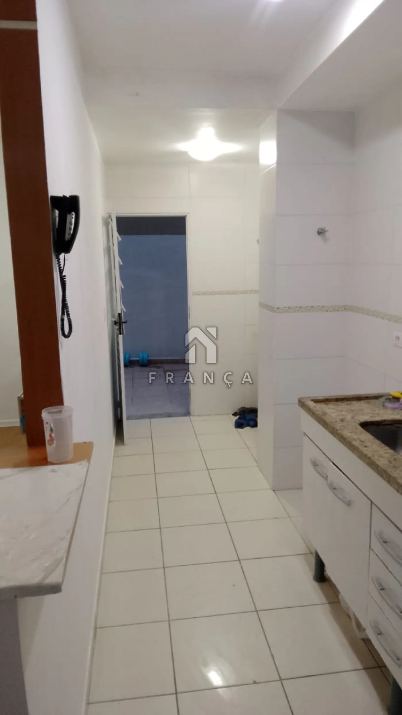 Cozinha com gabinete e acesso direto ao quintal
