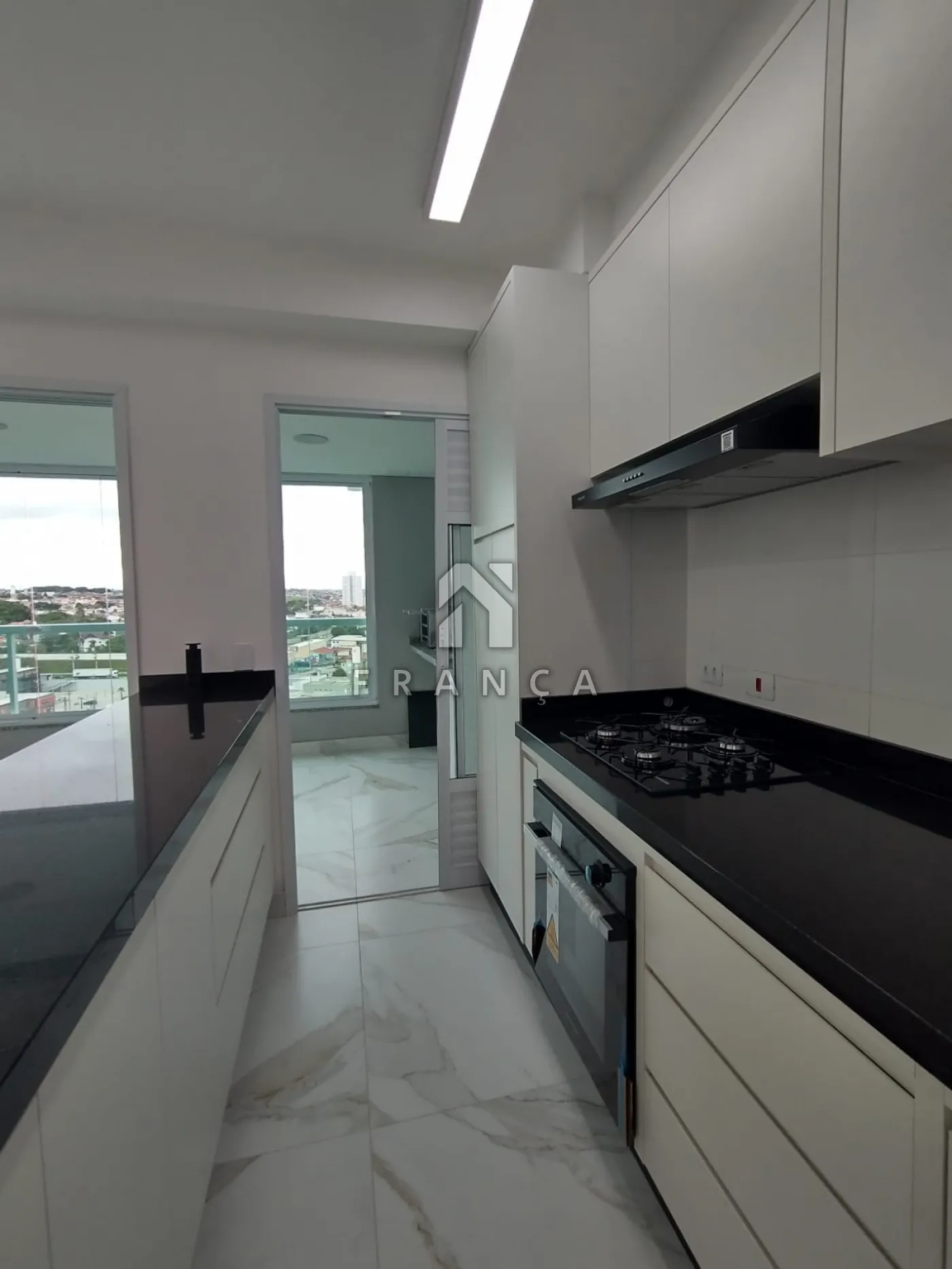 Cozinha com forno embutido, exaustor e cooktop