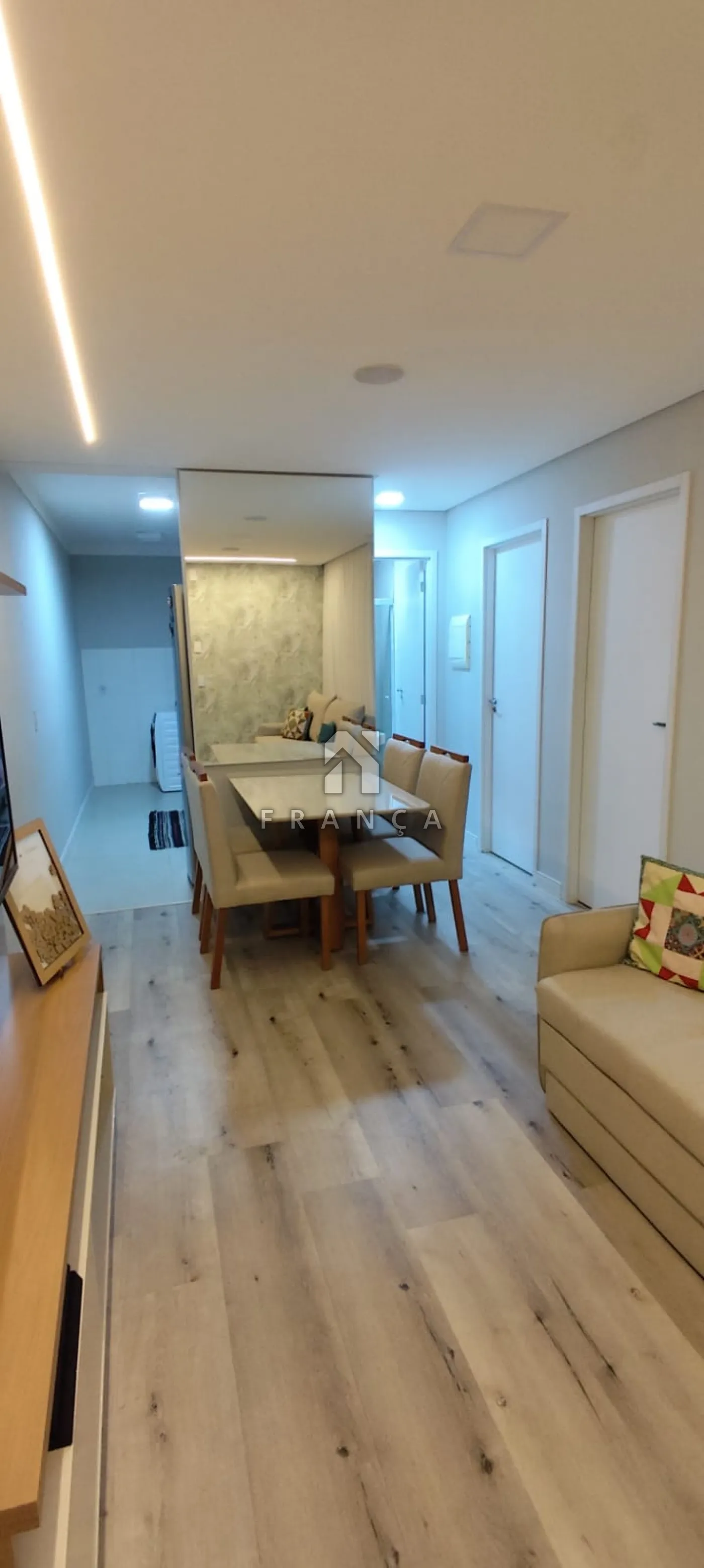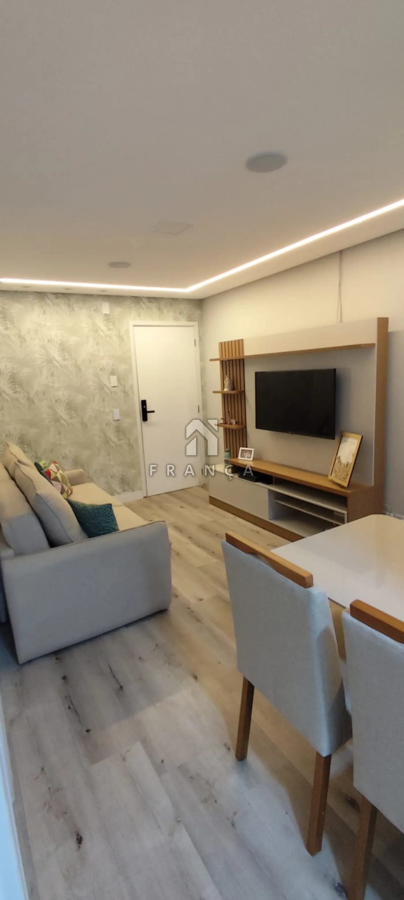 O imóvel conta com 2 dormitórios, sendo 1 com móveis planejados, oferecendo melhor aproveitamento do espaço. Possui sala aconchegante, cozinha planejada, funcional e moderna, ideal para o dia a dia.