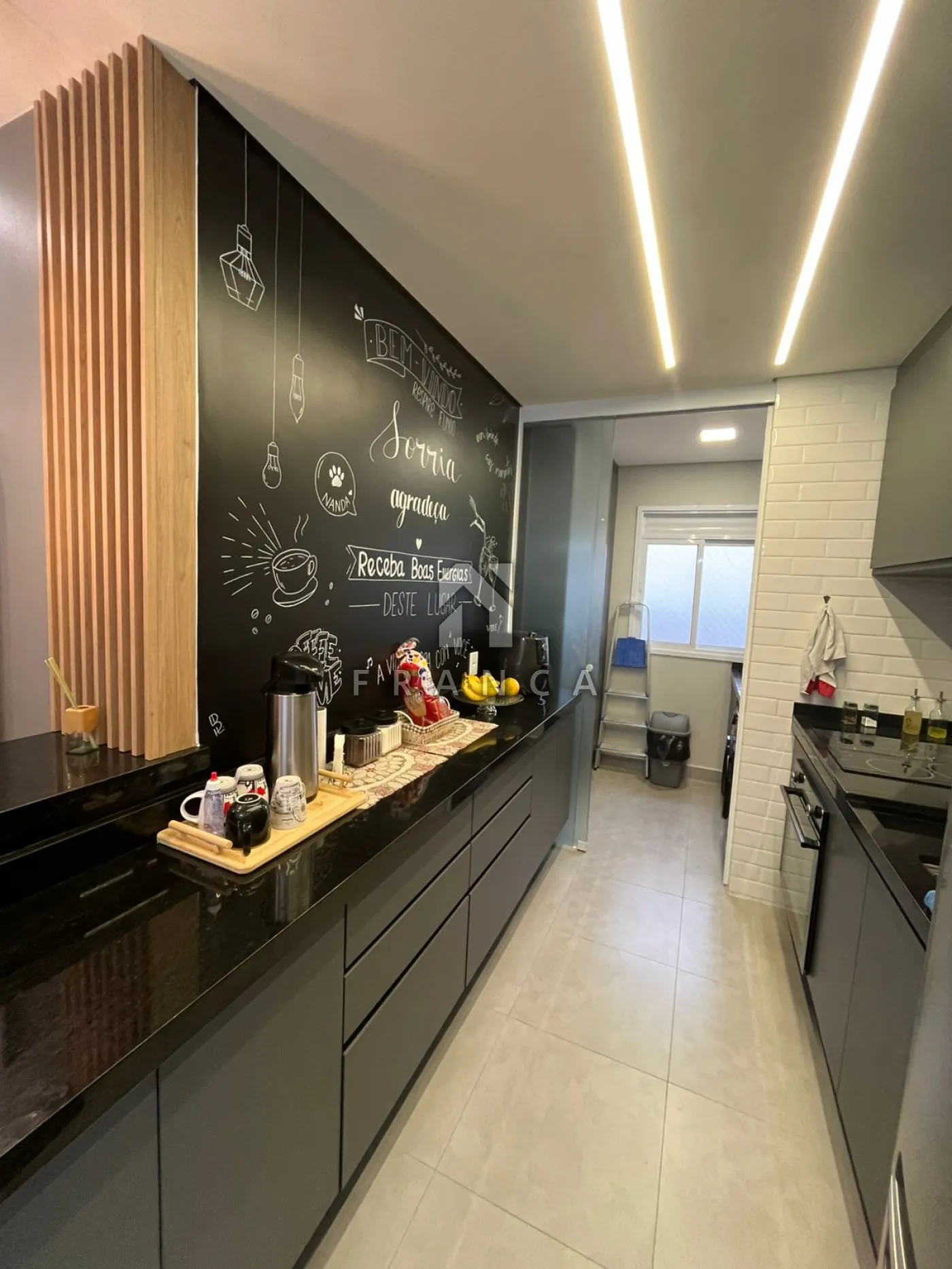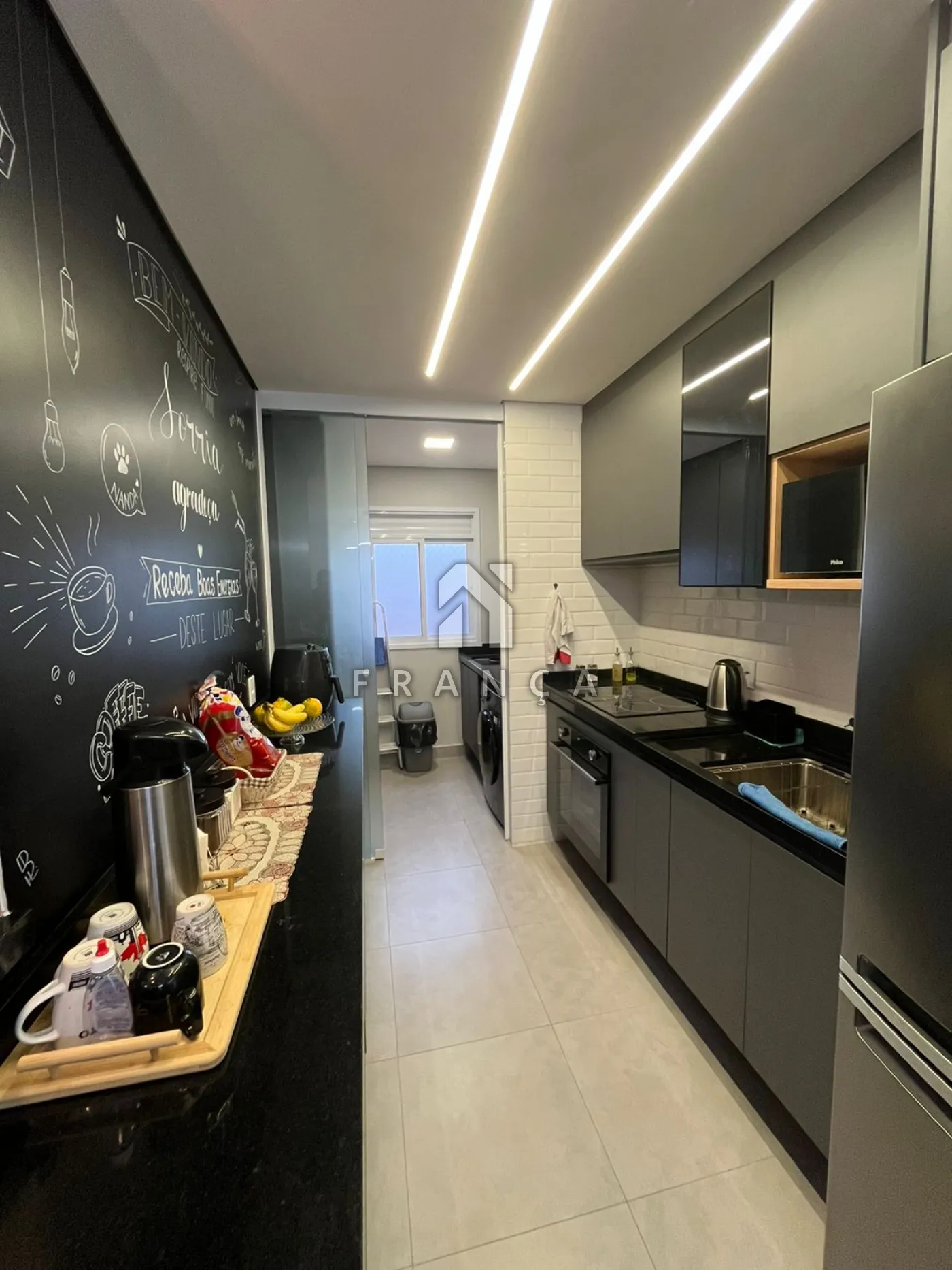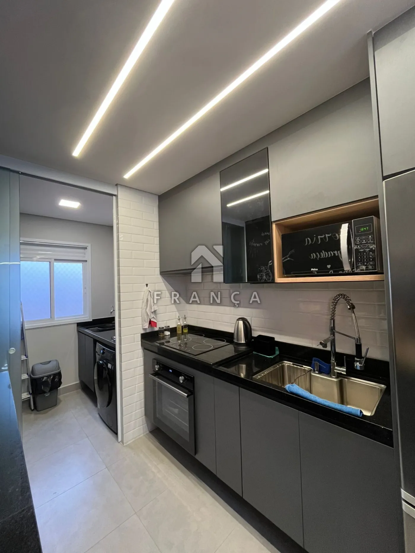 Cozinha planejada com fogão elétrico e forno de indução