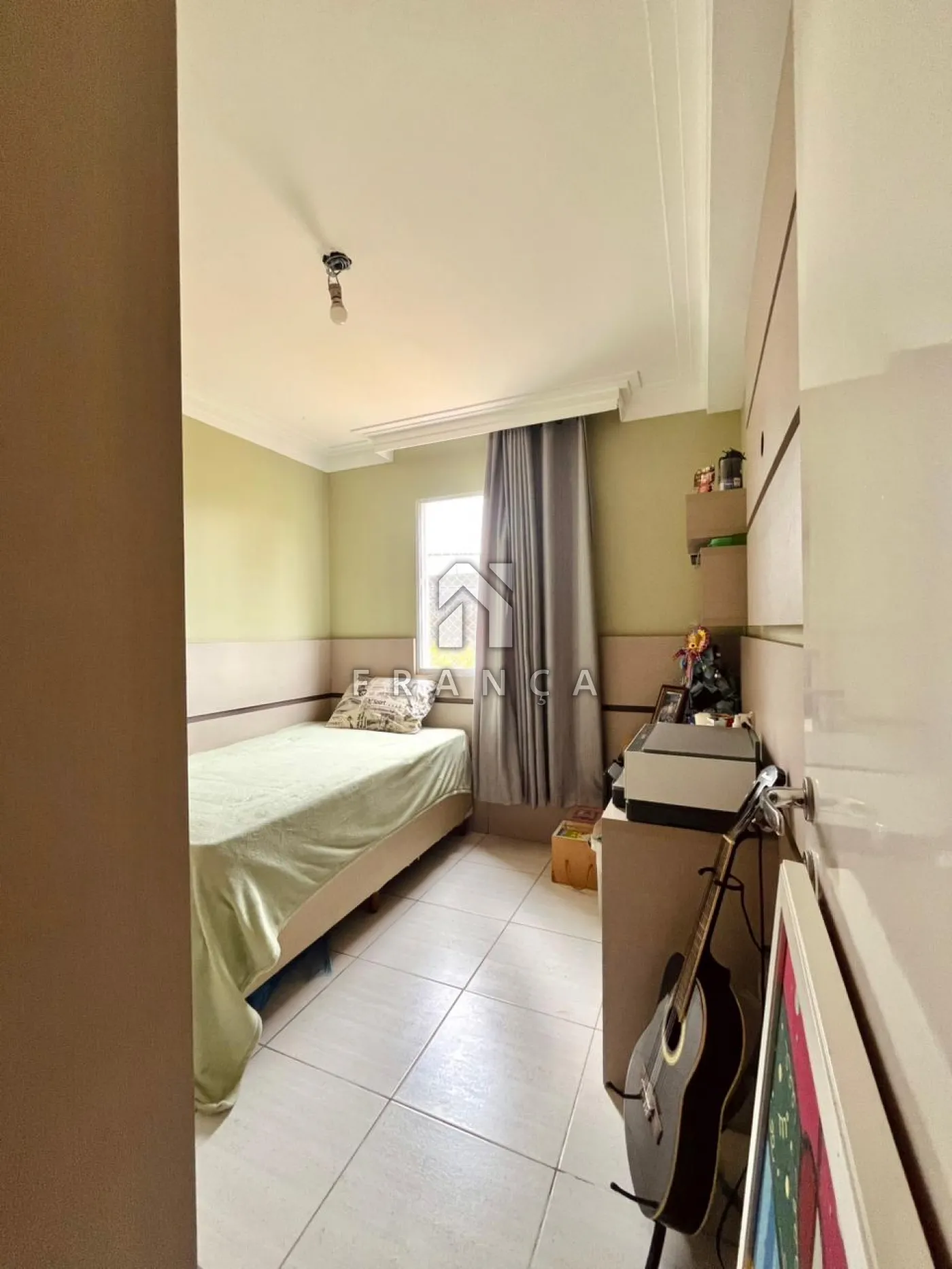 São 2 dormitórios, sendo 1 suíte com móveis planejados, cortineiro, box e gabinete. O segundo quarto também conta com planejados sob medida, painel e cortineiro, oferecendo versatilidade para dormitório, home office ou quarto infantil.