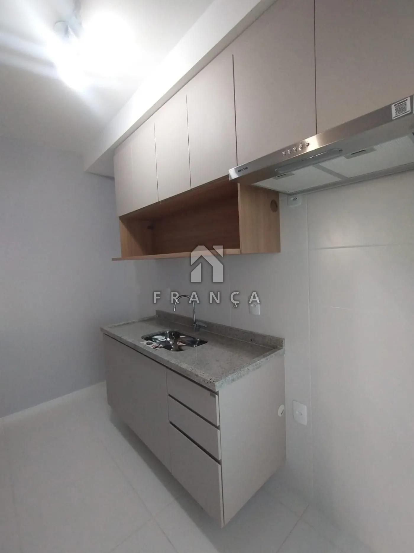 Cozinha com armários planejados, sugar e aparelho de gás