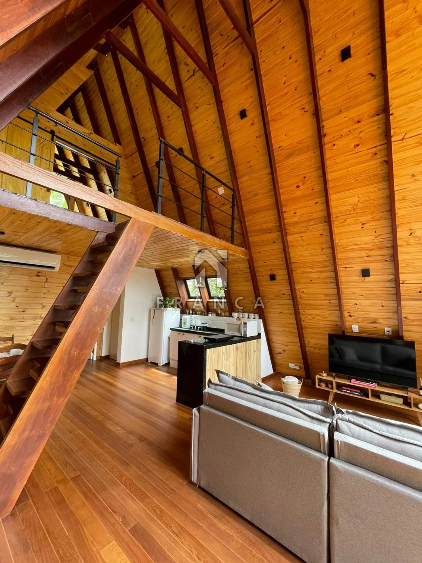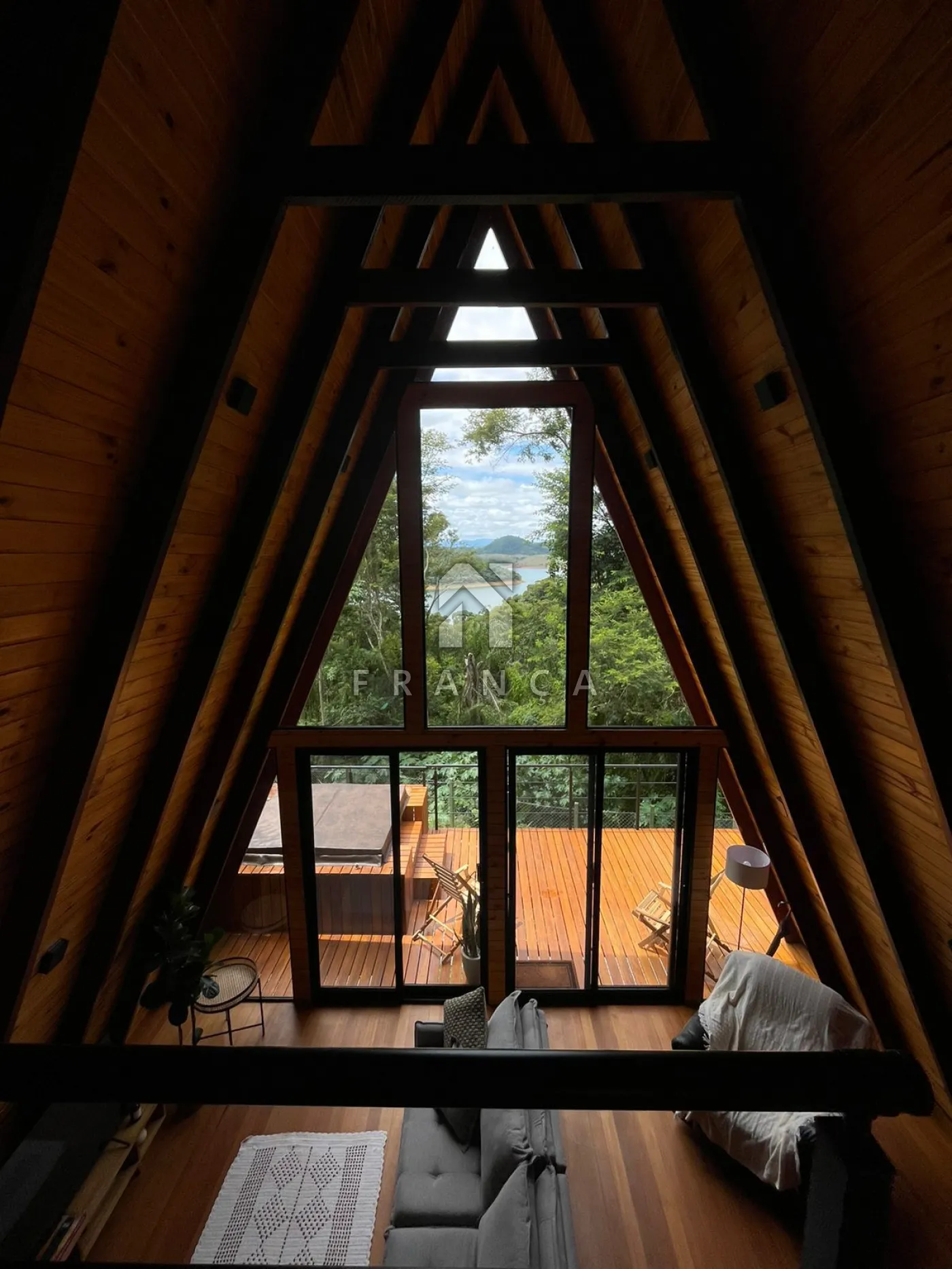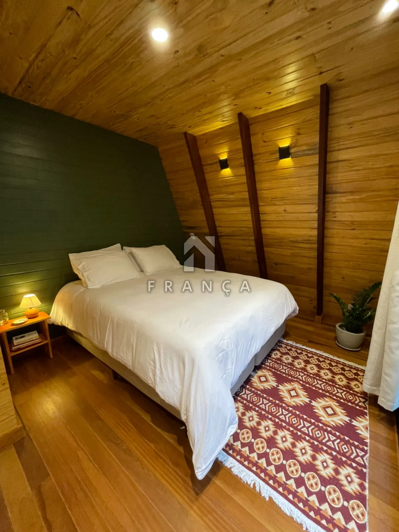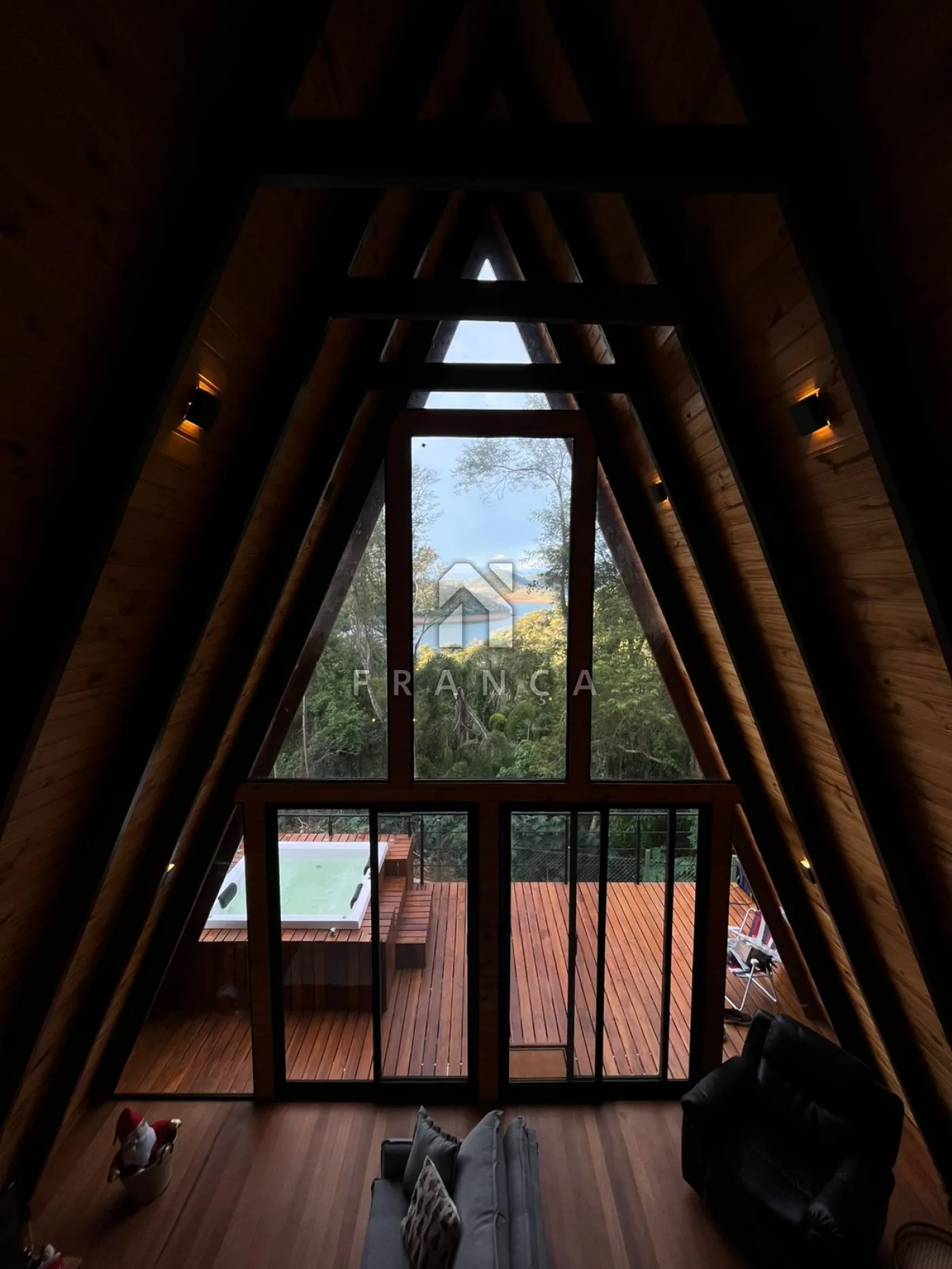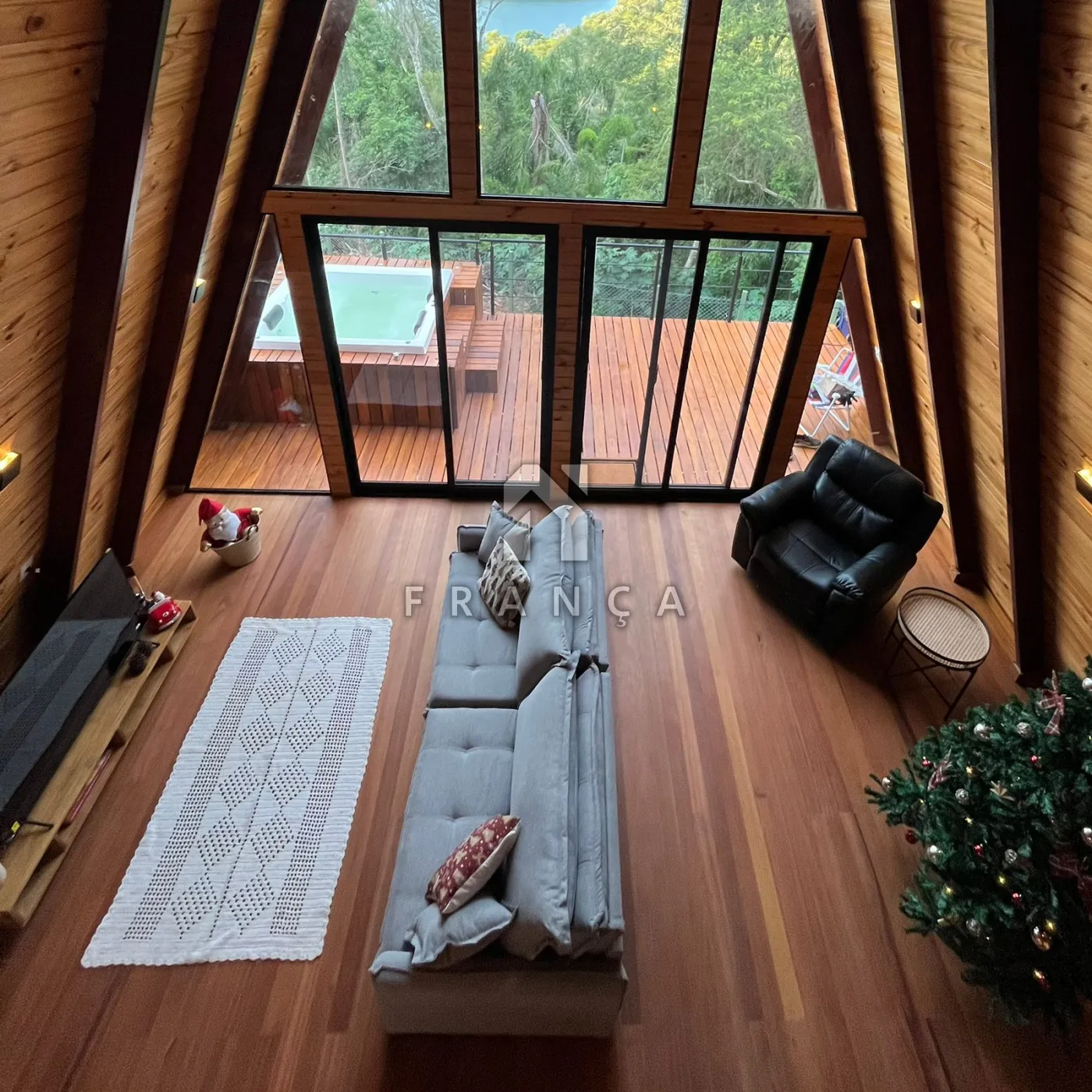 2 quartos, 1 banheiro, sala de TV, sala de jantar, cozinha, espaço de home office, deck com jacuzzi para 4 pessoas, espaço para fogueira e garagem para até 3 carros.