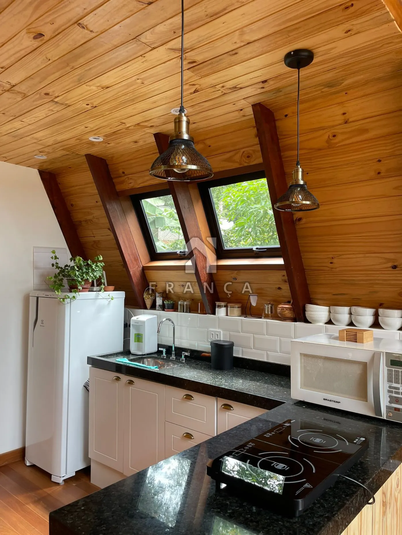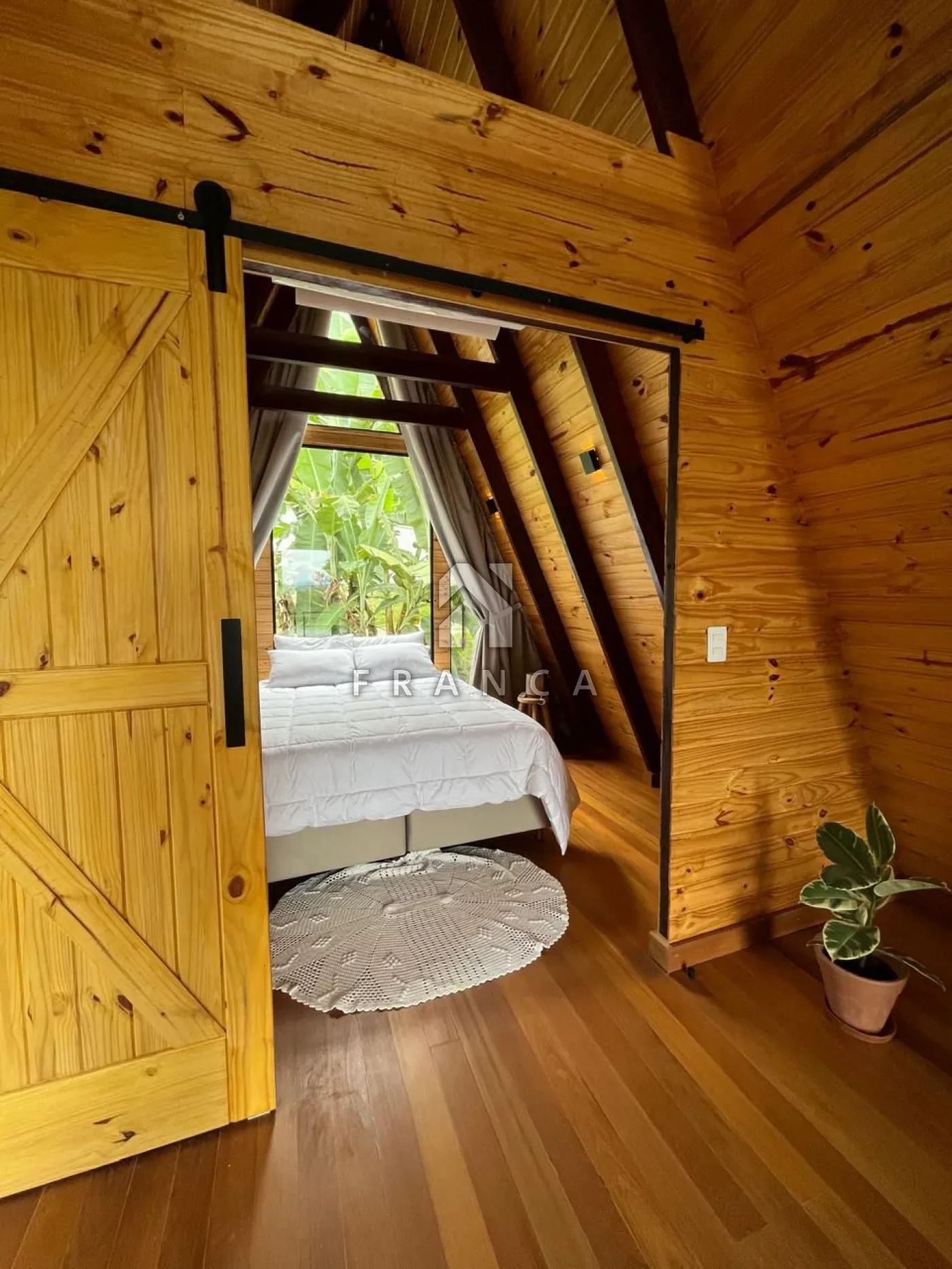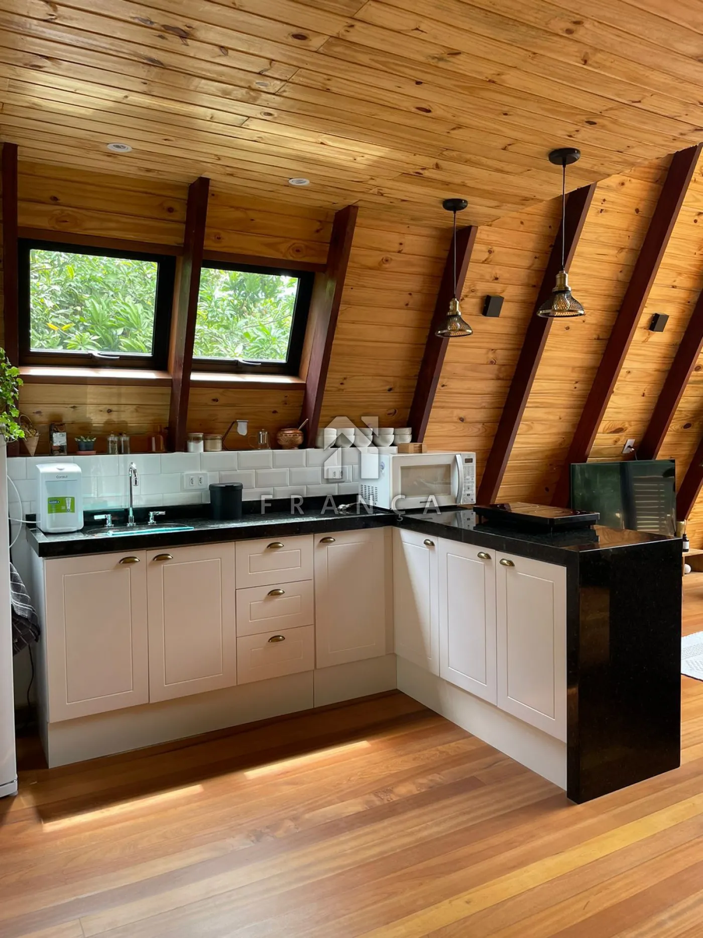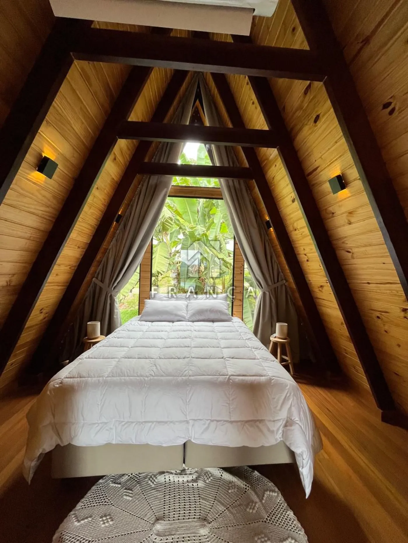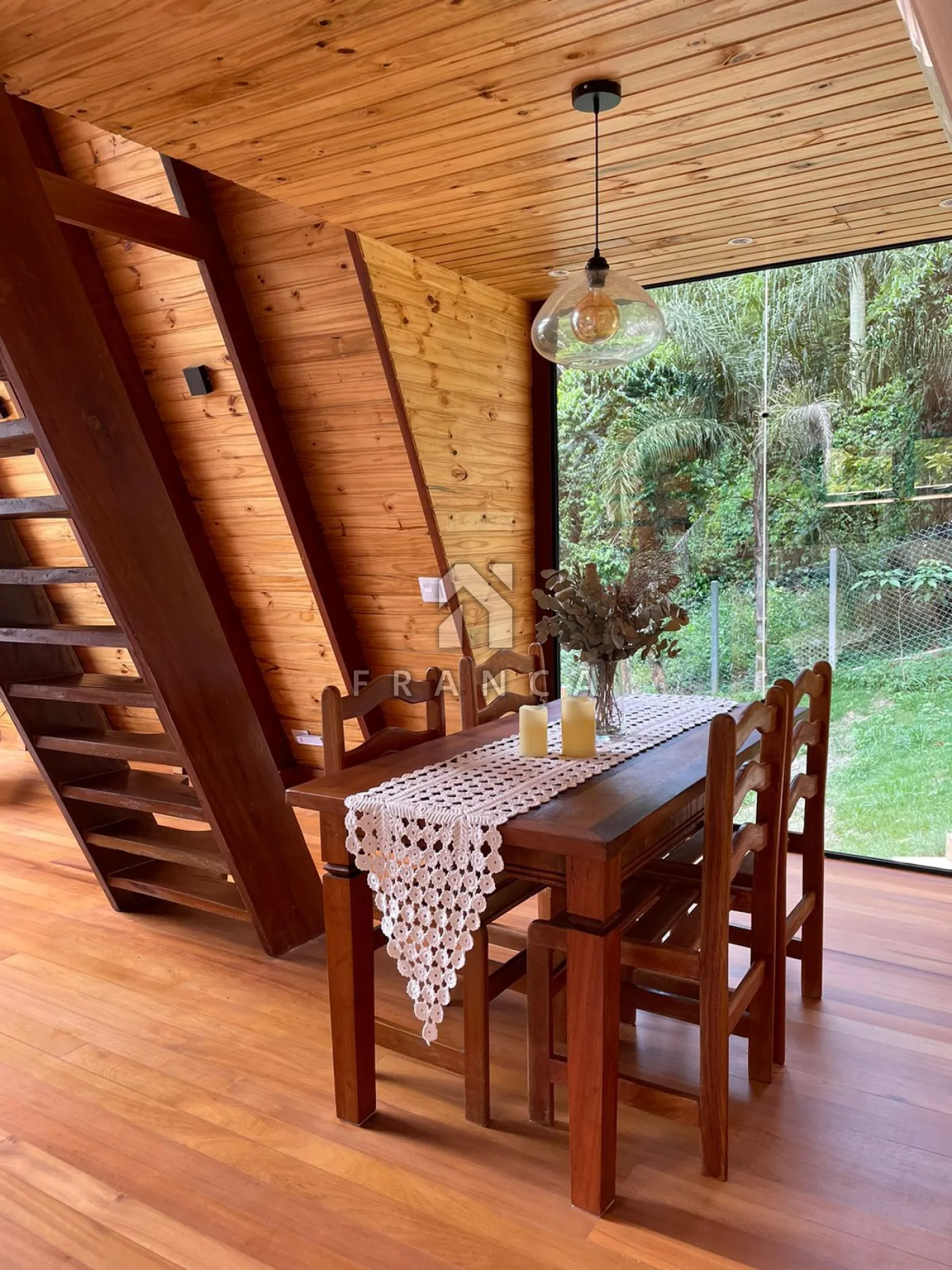 2 quartos, 1 banheiro, sala de TV, sala de jantar, cozinha, espaço de home office, deck com jacuzzi para 4 pessoas, espaço para fogueira e garagem para até 3 carros.