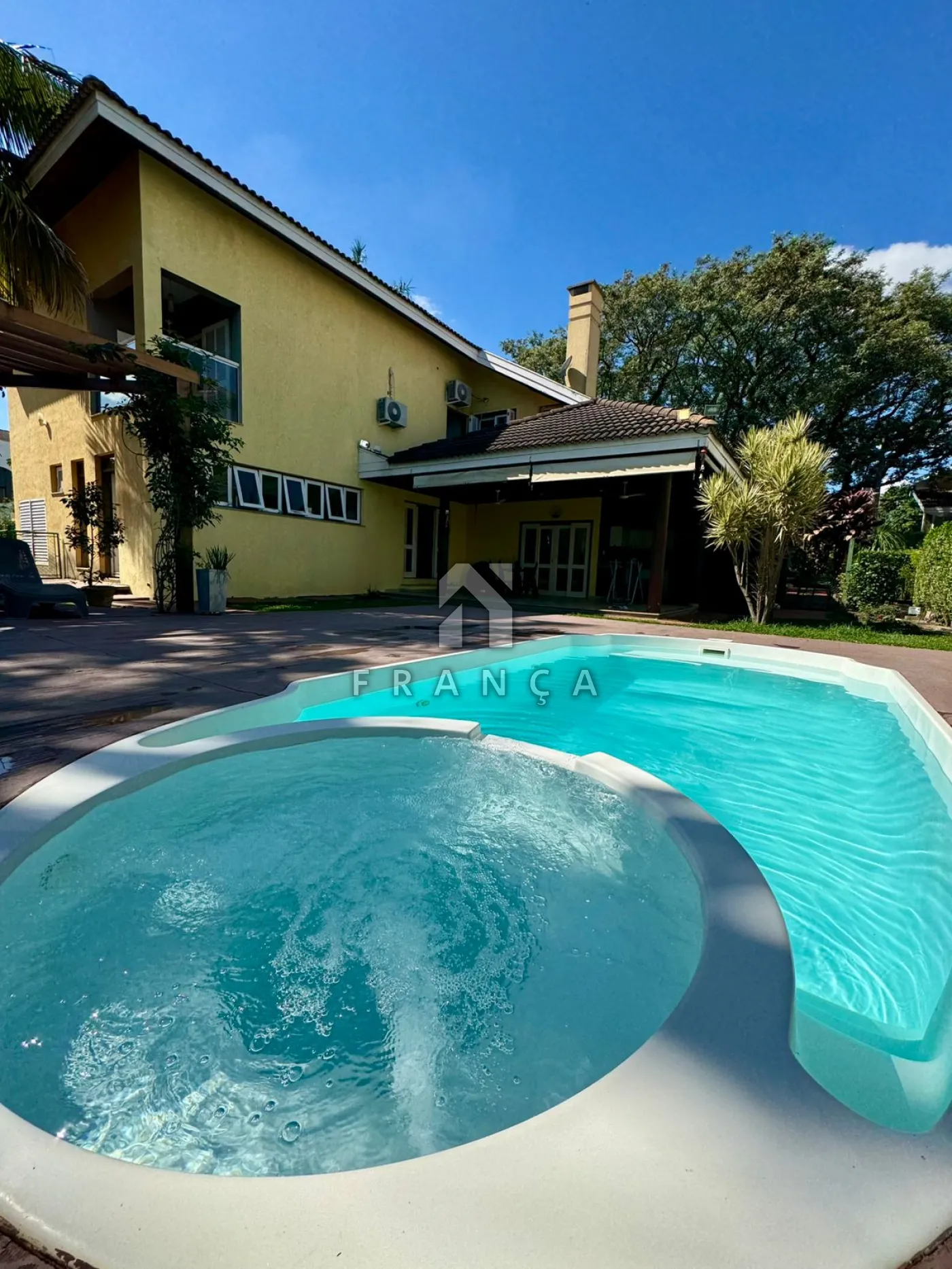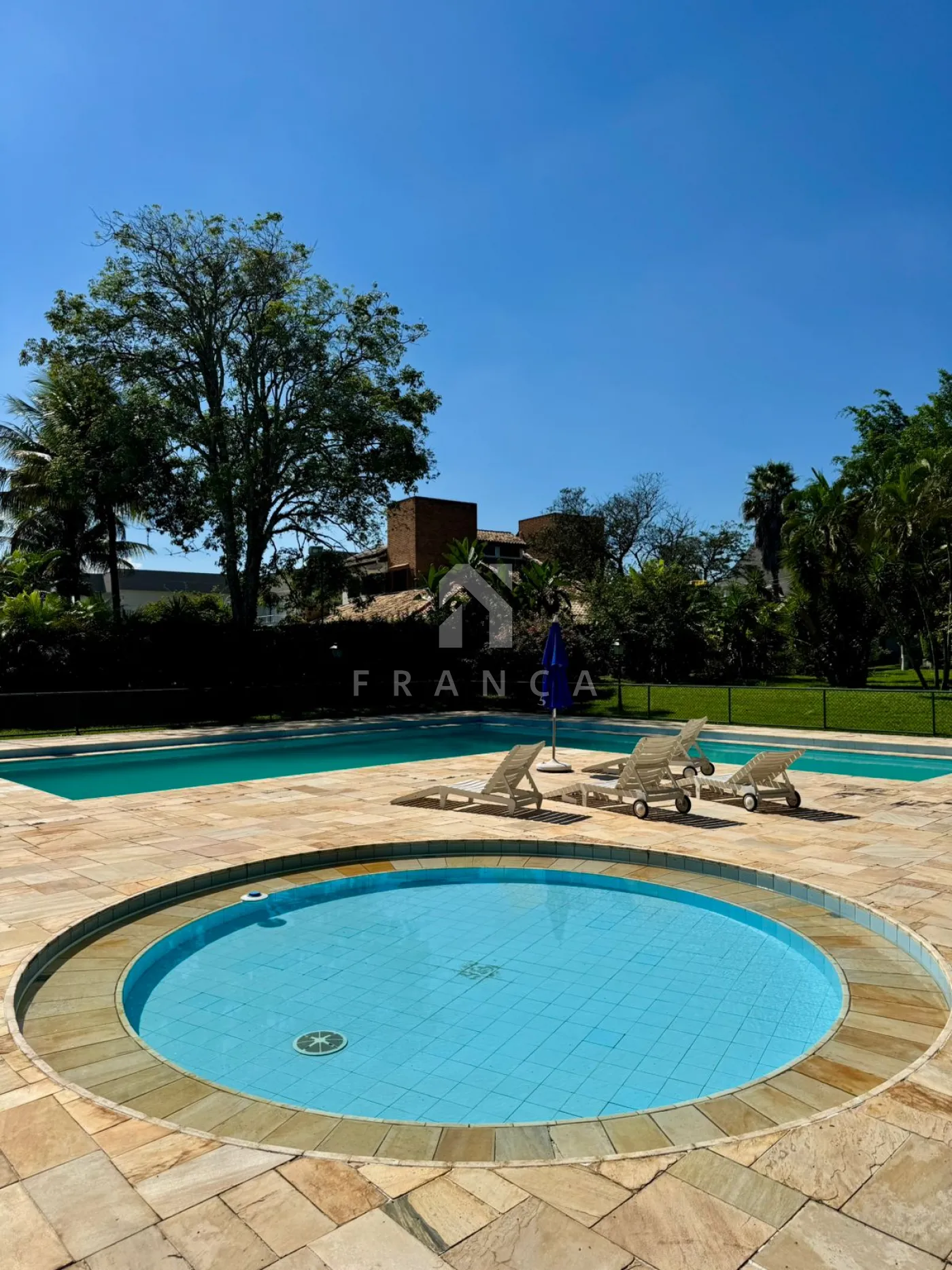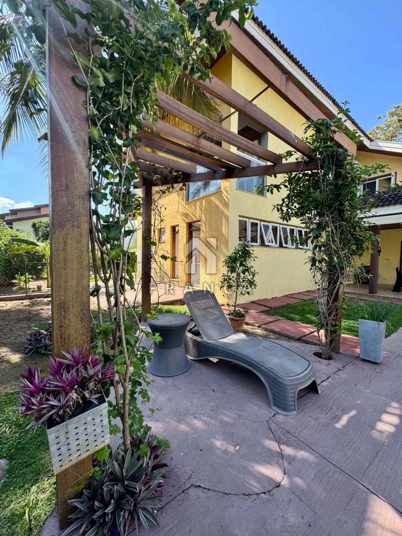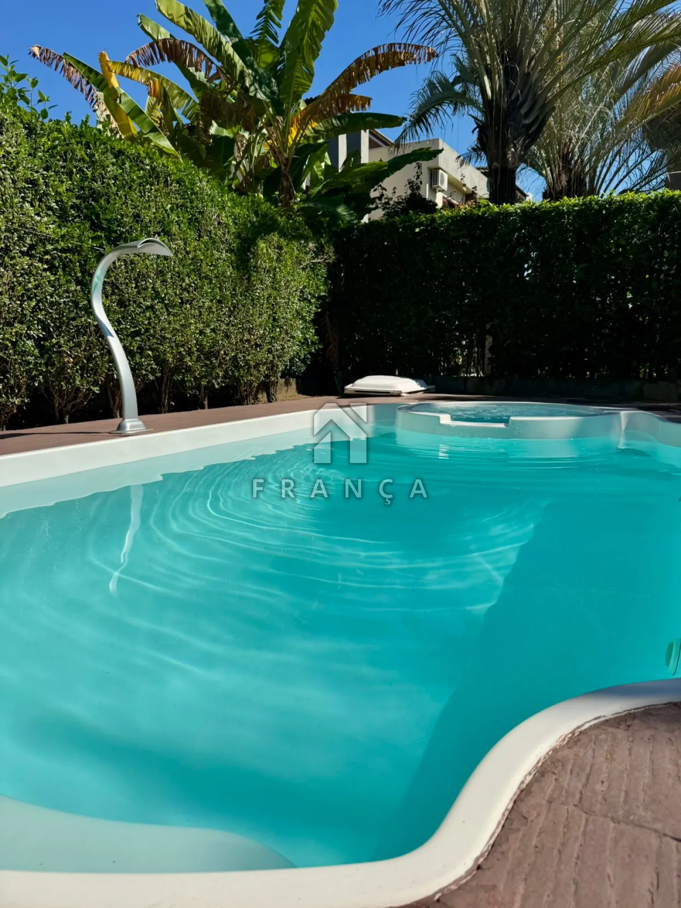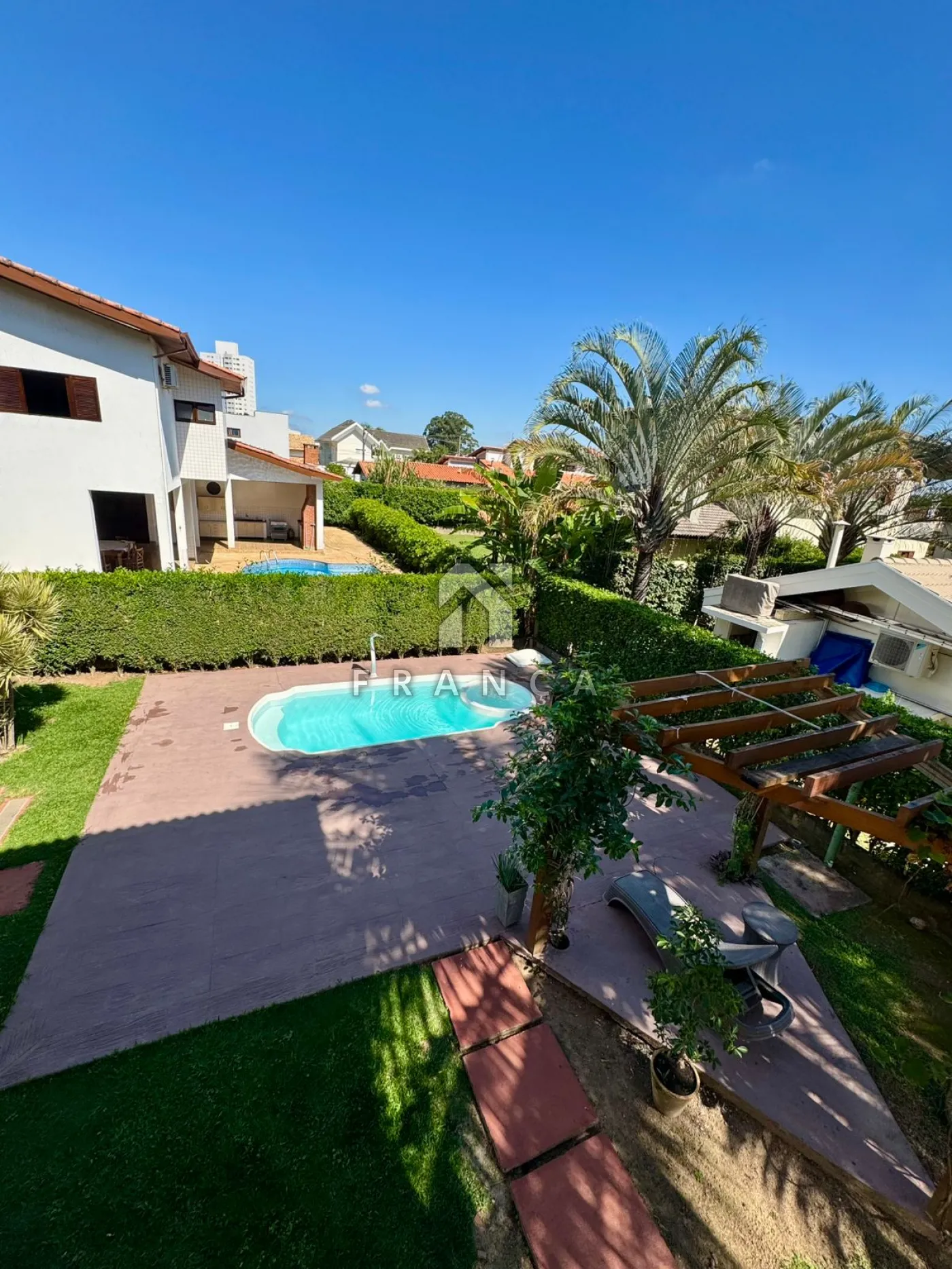A cozinha ampla com despensa é funcional e bem iluminada, conectada à lavanderia independente. A área externa é um verdadeiro refúgio: piscina com hidromassagem, espaço gourmet com churrasqueira, pergolado para momentos ao ar livre e um quintal com árvores frutíferas, que trazem natureza e frescor ao ambiente.