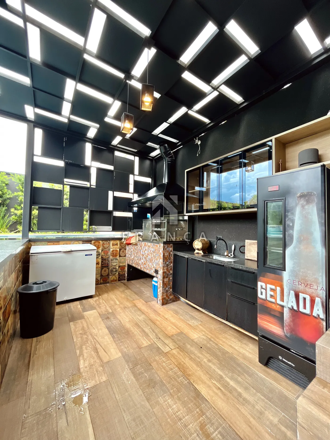 A área externa é o grande destaque, projetada para o lazer completo. A integração entre o ambiente interno e a área gourmet proporciona amplitude e sofisticação. O espaço conta com uma estrutura completa com churrasqueira, exaustor, armários e freezer, ideal para recepções.