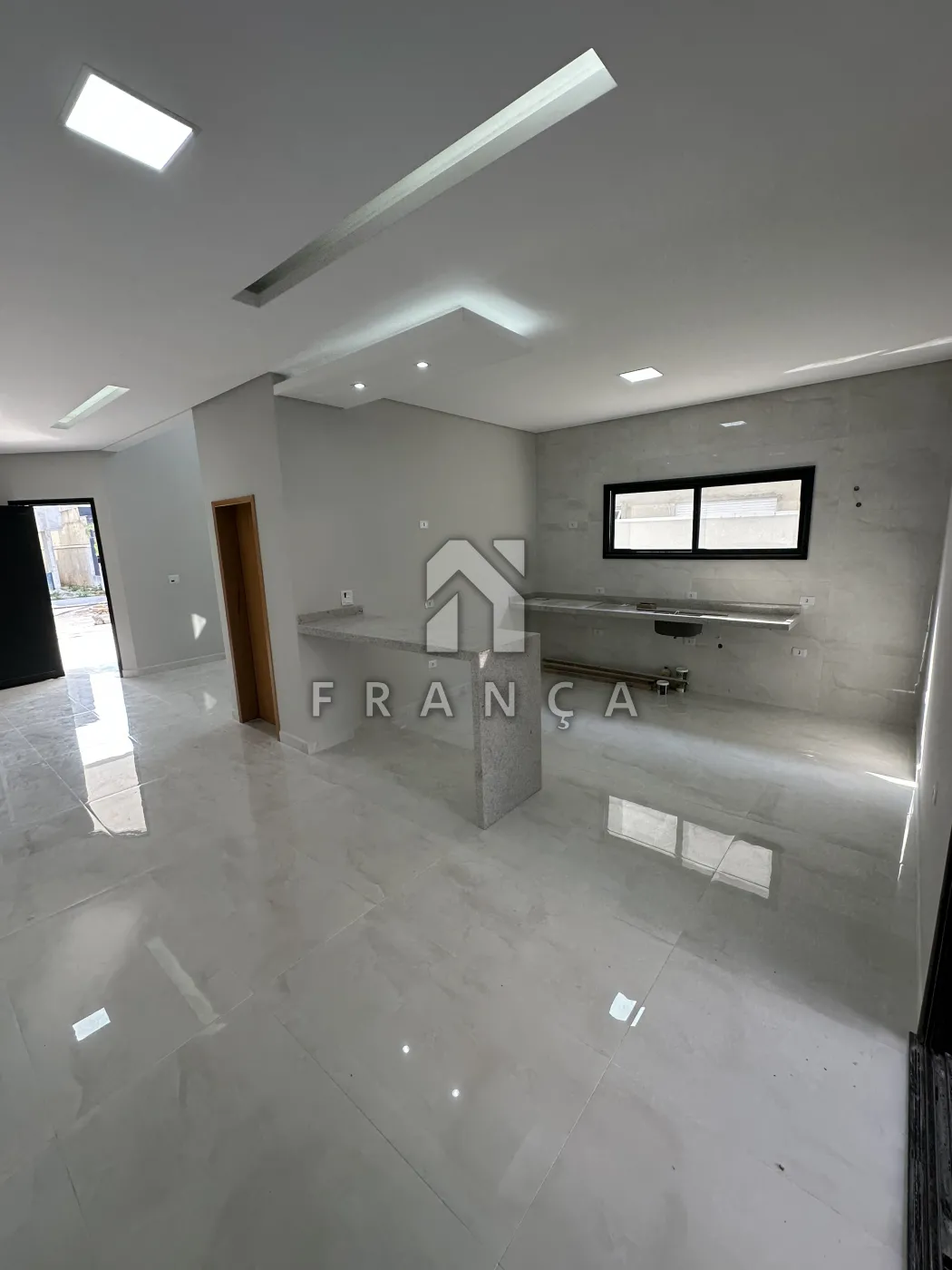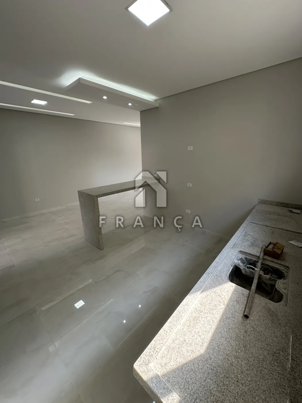 Sala ampla para 3 ambientes, teto rebaixado em gesso com iluminação, cozinha integrada estilo americano, espaço gourmet , quintal .
