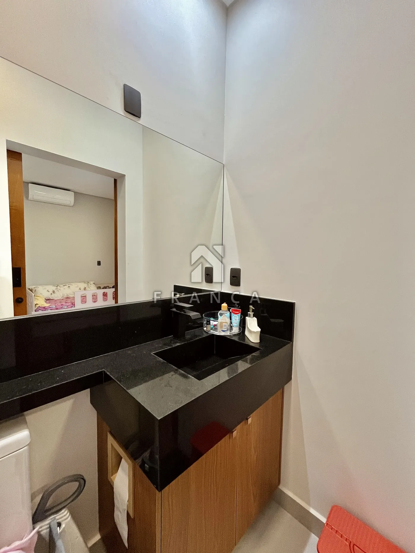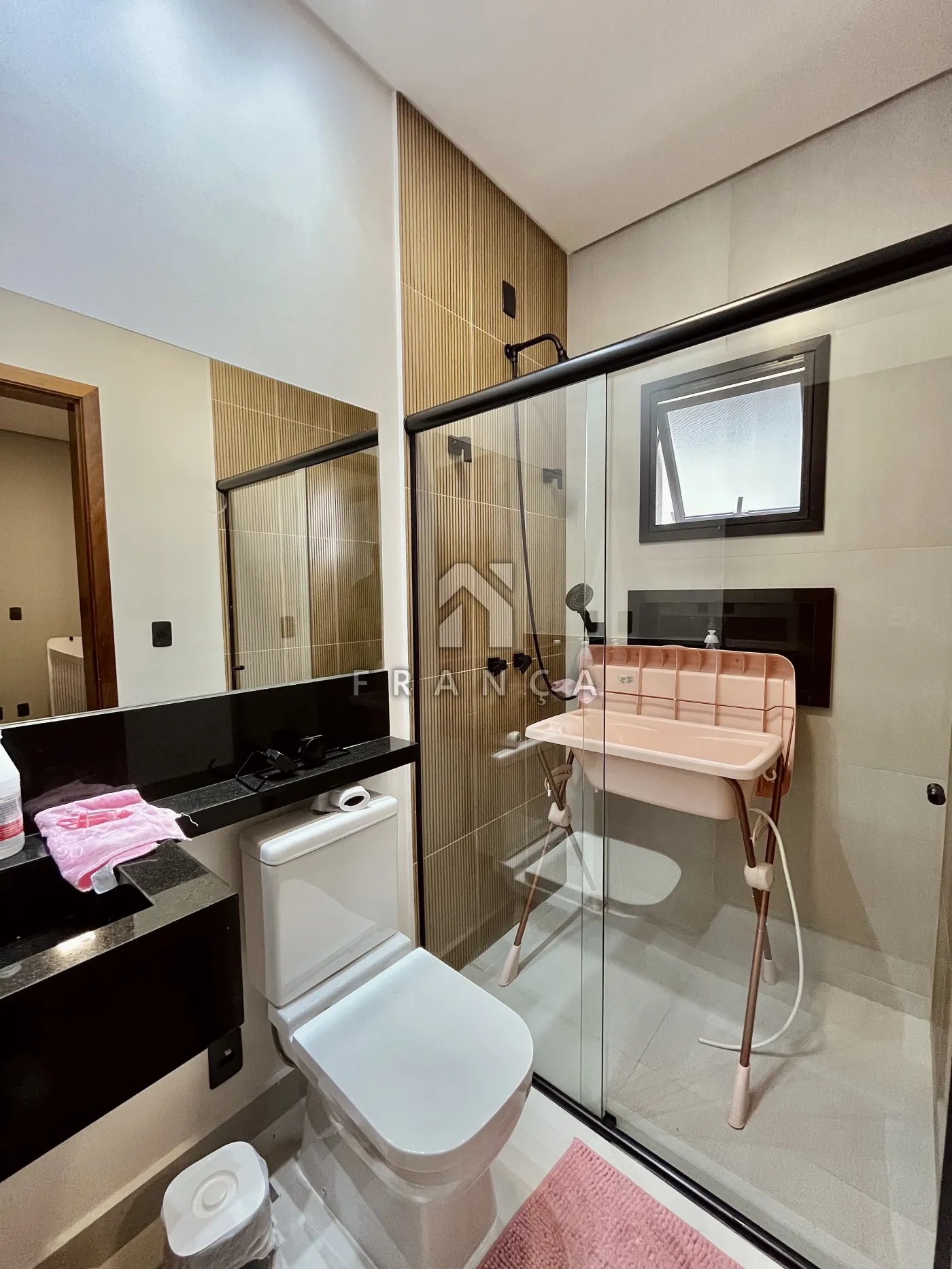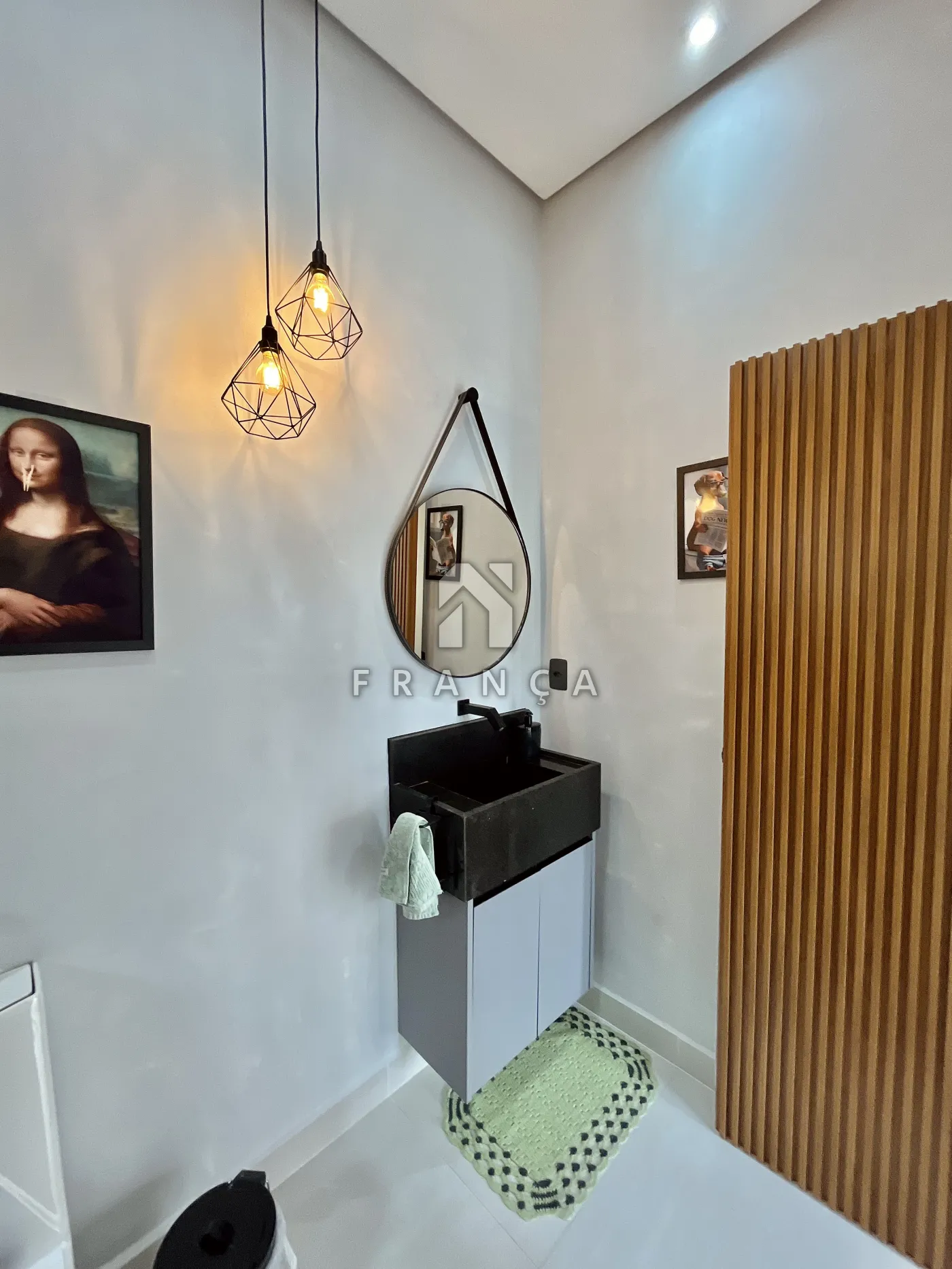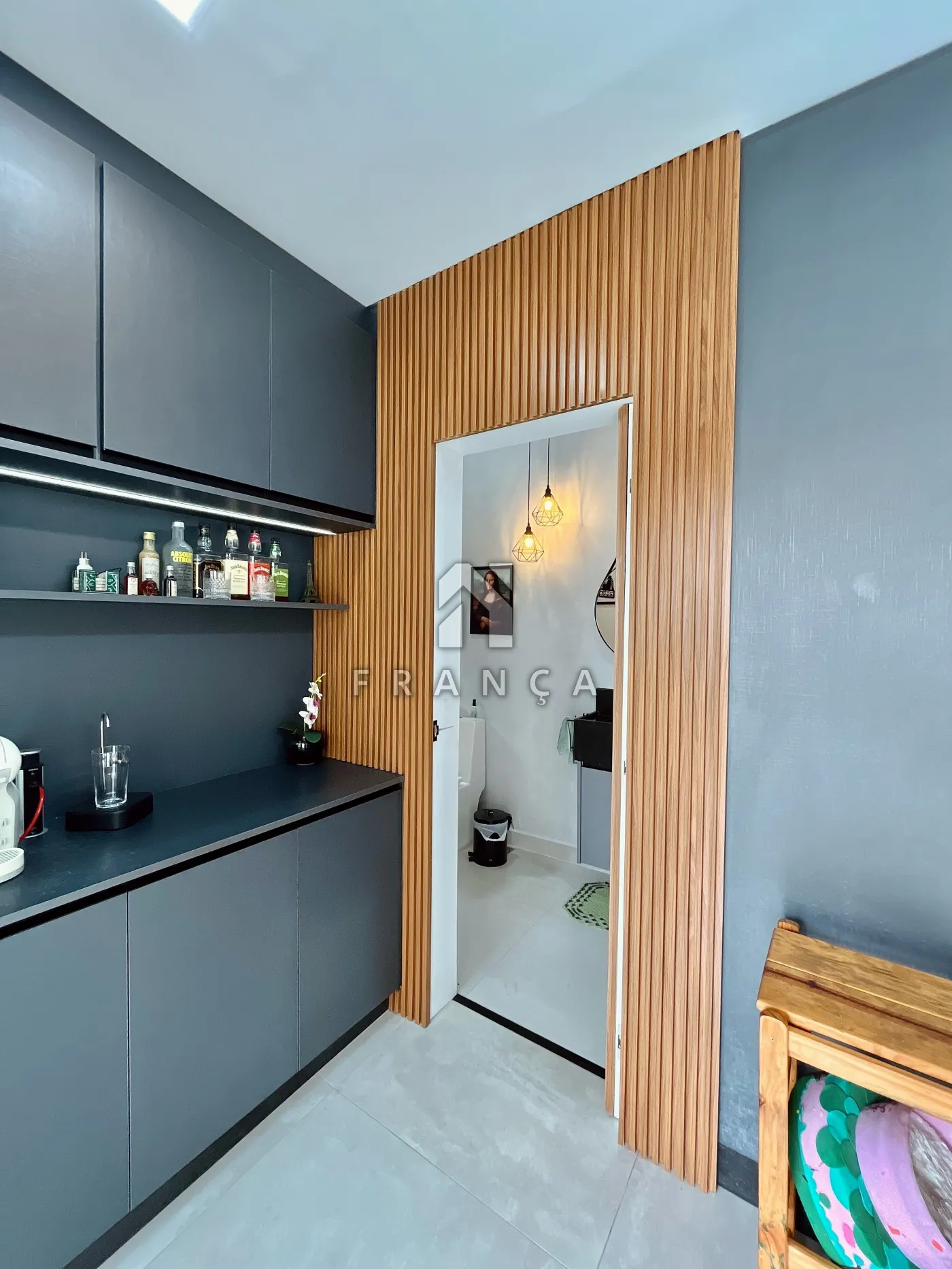 - 1 banheiro completo no piso inferior com porta ripada invisível