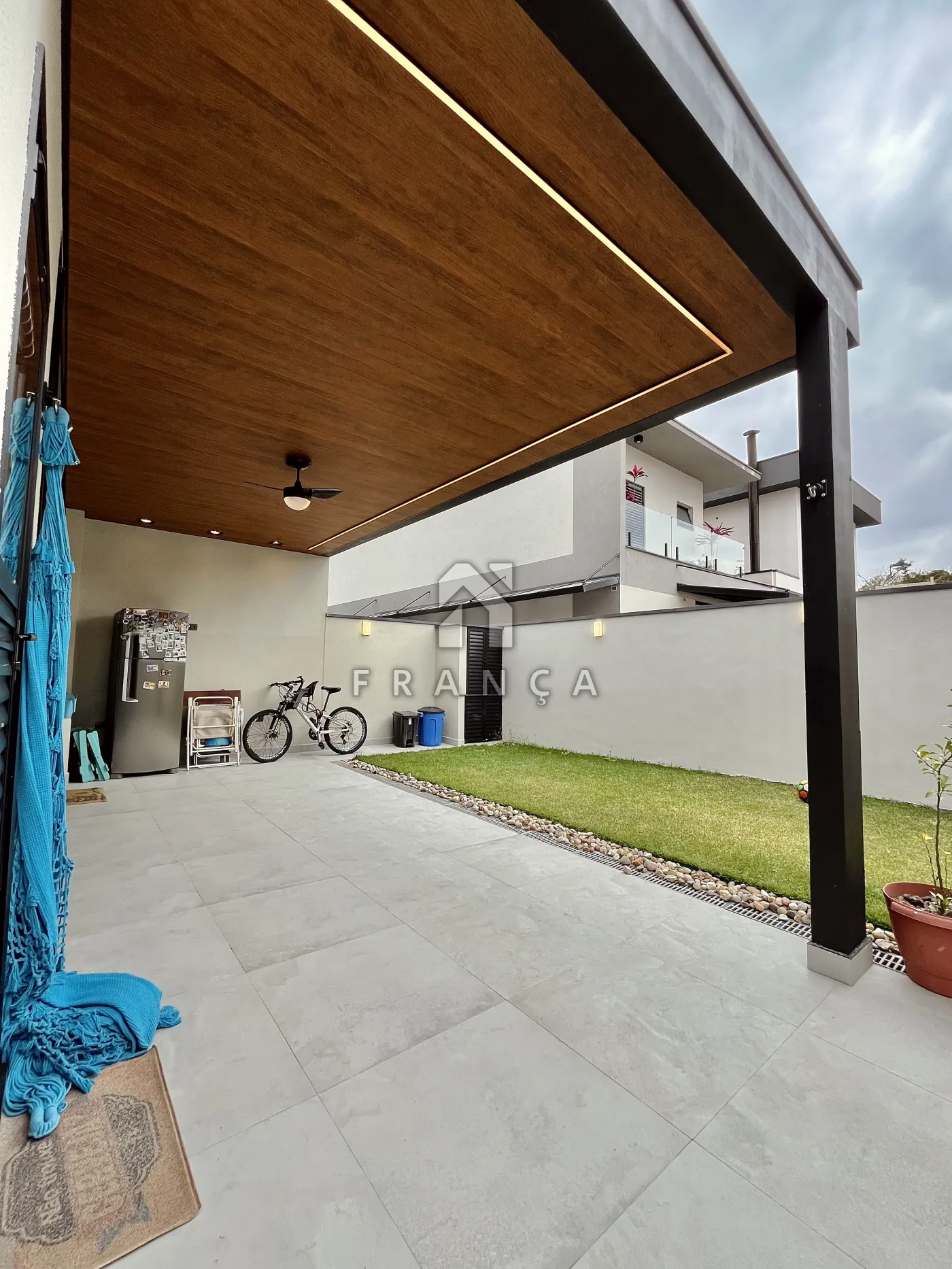 - Área externa de 20m² com: Ventilador de teto, Tomadas e iluminação em LED, Pontos de luz no jardim, Muros altos (sem vizinho de frente) e Vista livre nas sacadas dos quartos