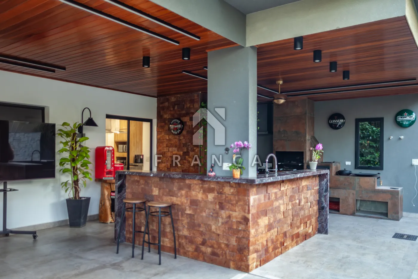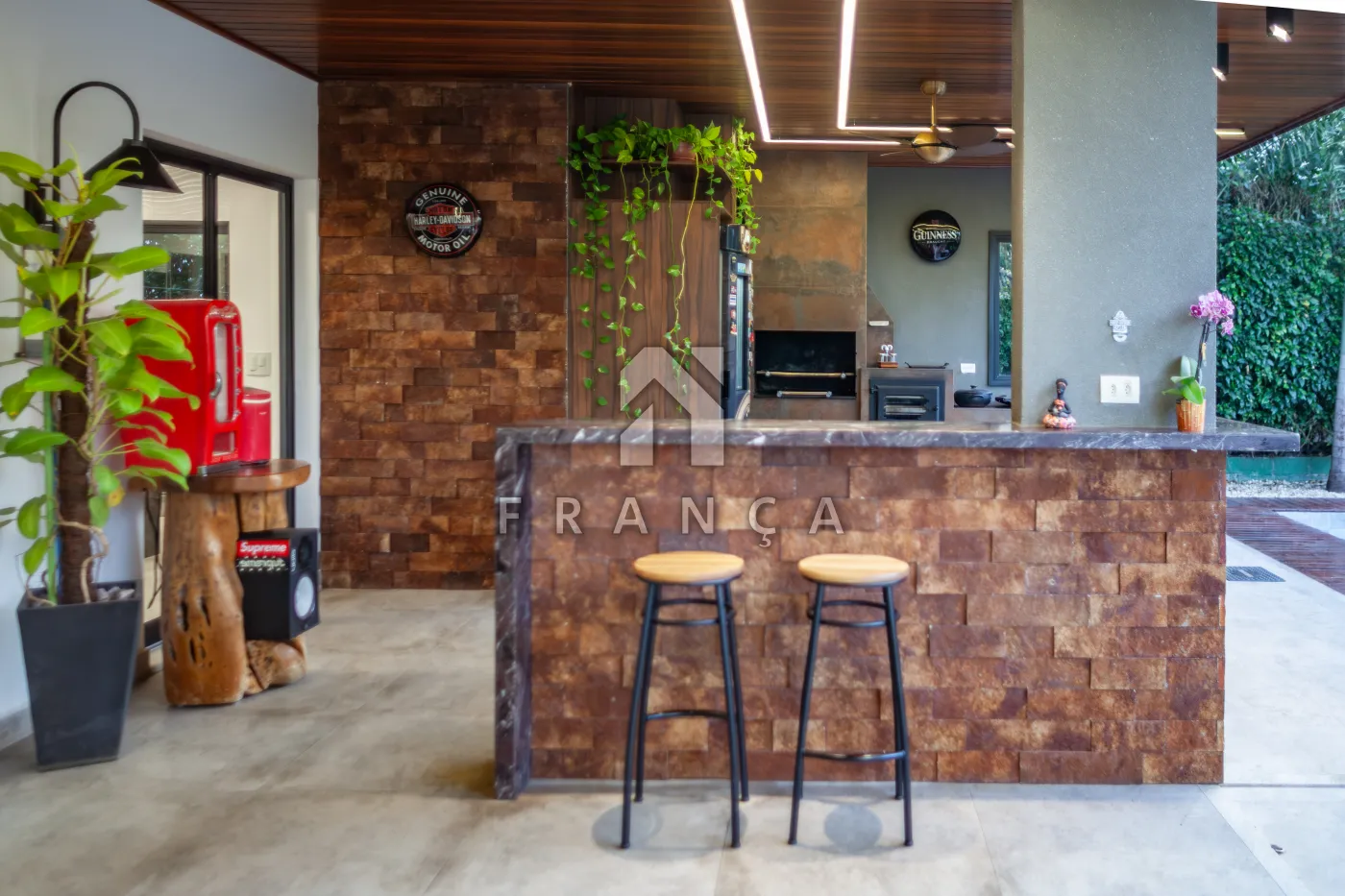 O imóvel conta com amplos espaços , lareira, escritório, 5 dormitórios todos com ar condicionado, sendo 4 suítes, closet, 2 lavabos, espaço gourmet com churrasqueira , fogão a lenha e ventiladores de teto , lago privativo e piscina aquecidos com trocador de calor o que possibilita a incrível experiência de poder nadar com os peixes e sistema de tratamento de água por ozônio. Projeto completo de iluminação de jardinagem e sub aquática do lago.