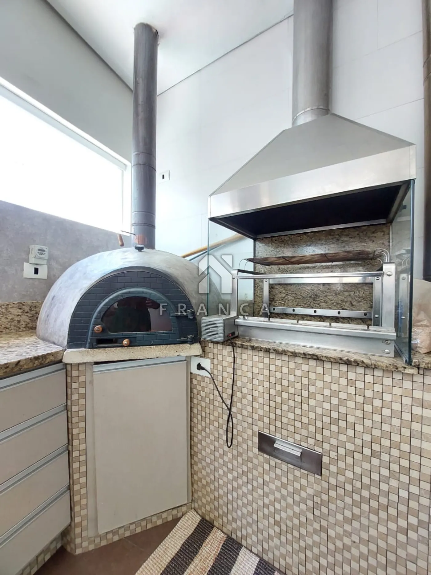 - Área gourmet com churrasqueira, forno de pizza e fogão a lenha