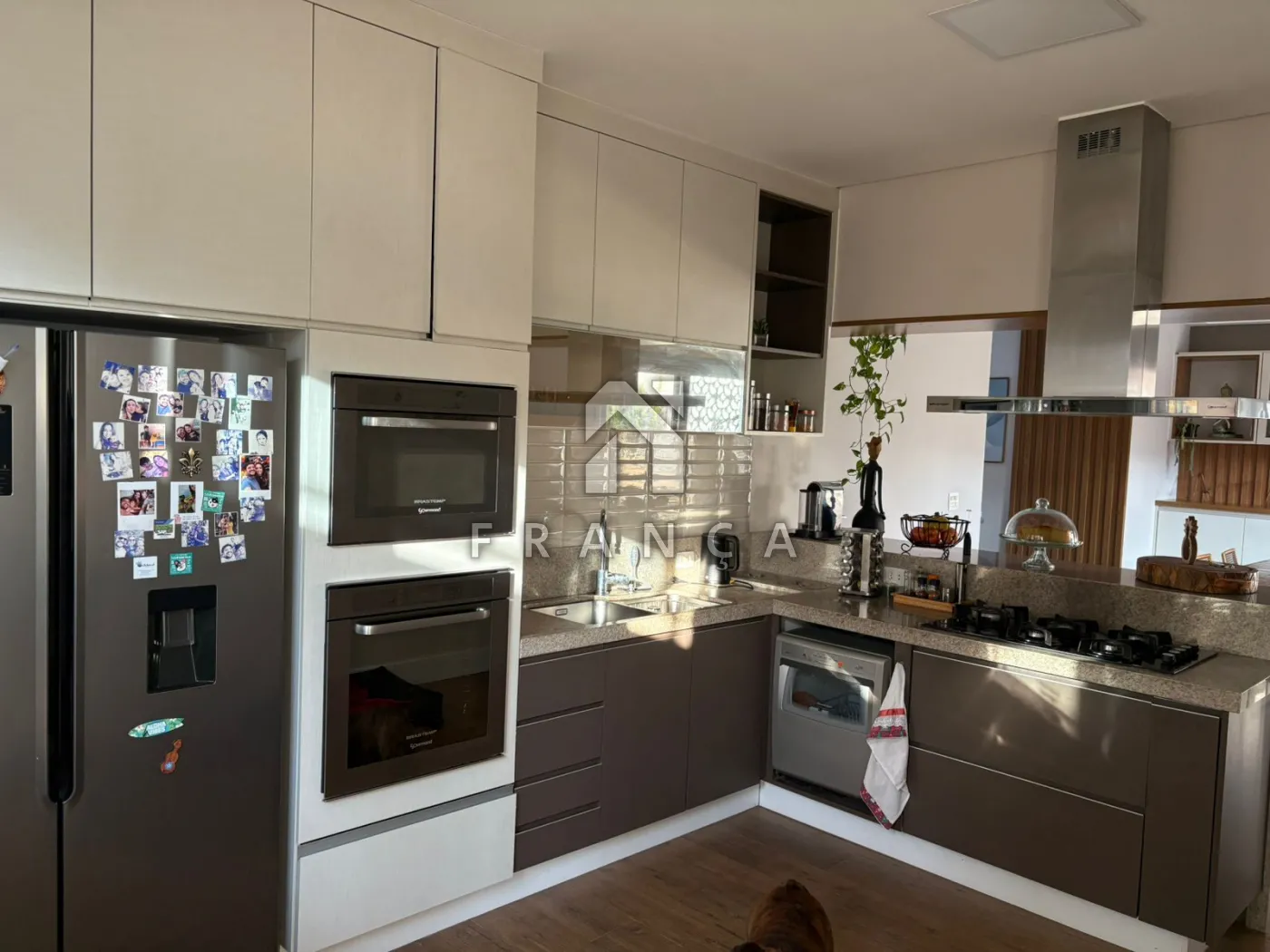 Cozinha planejada com forno, geladeira e lava-louças