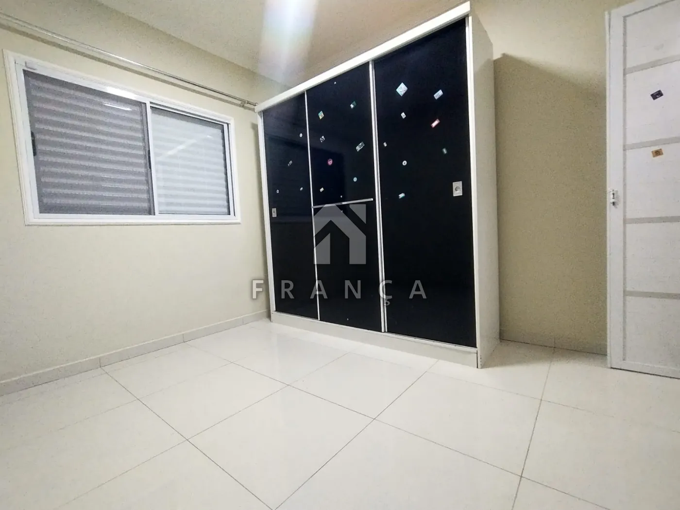 2 quartos com janelas em alumínio branco com tela mosquiteiro e portas tipo camarão em alumínio branco.