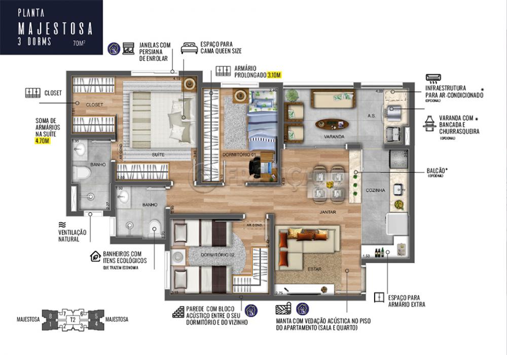 3 Dorm ou opção de sala estendida, sendo 1 suíte com closet